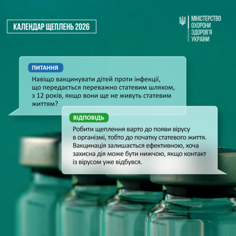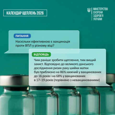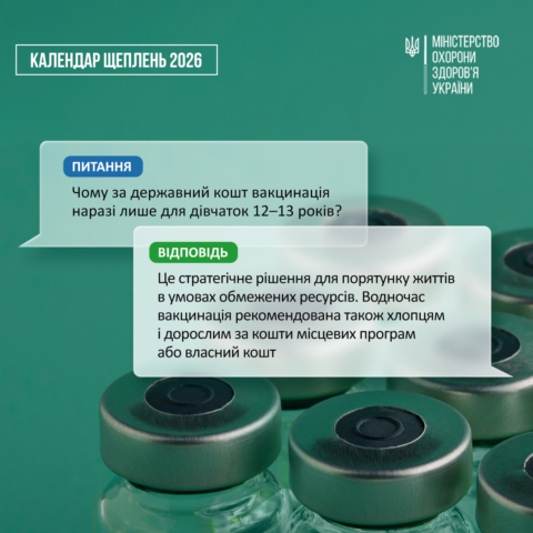 5 березня 2026До оновленого Національного Календаря профілактичних щеплень включено вакцину проти вірусу папіломи людини (ВПЛ) для дівчат віком 12–13 років