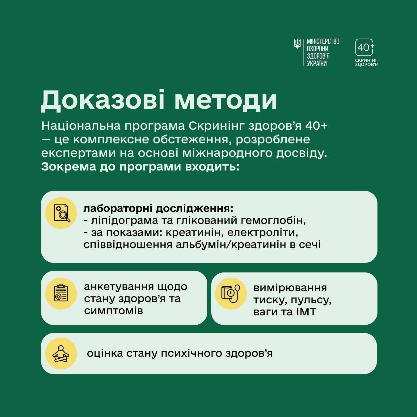 З початку 2026 року в Україні діє національна програма Скринінг здоров’я 40+. Це реальна можливість безоплатно перевірити стан свого організму та вчасно оцінити індивідуальні ризики розвитку серйозних захворювань.