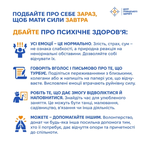 Жити, працювати та підтримувати інших можливо лише тоді, коли дбаєш про себе — системно та усвідомлено. У цьому дописі зібрані нагадування, як підтримувати психічне здоров’я під час та після кризових ситуацій, як-от масовані обстріли, що приносять втрати, біль і тривогу. Турбота про себе в такі моменти — це не розкіш, а ключ до виживання та здатності бути поруч для інших.