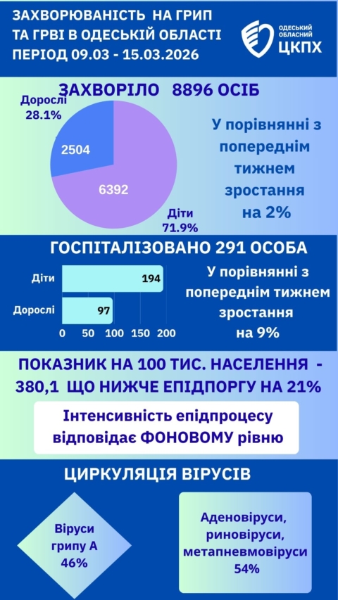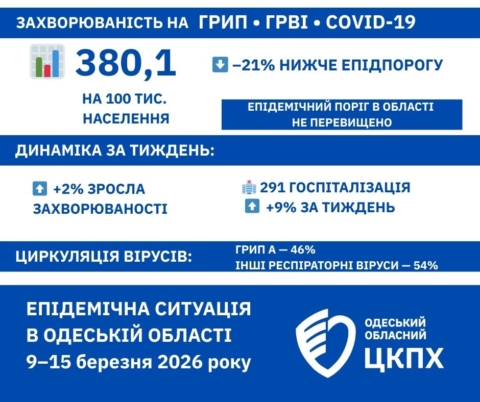 Епідситуація в Одеській області за період: 09.03–15.03.2026 р.