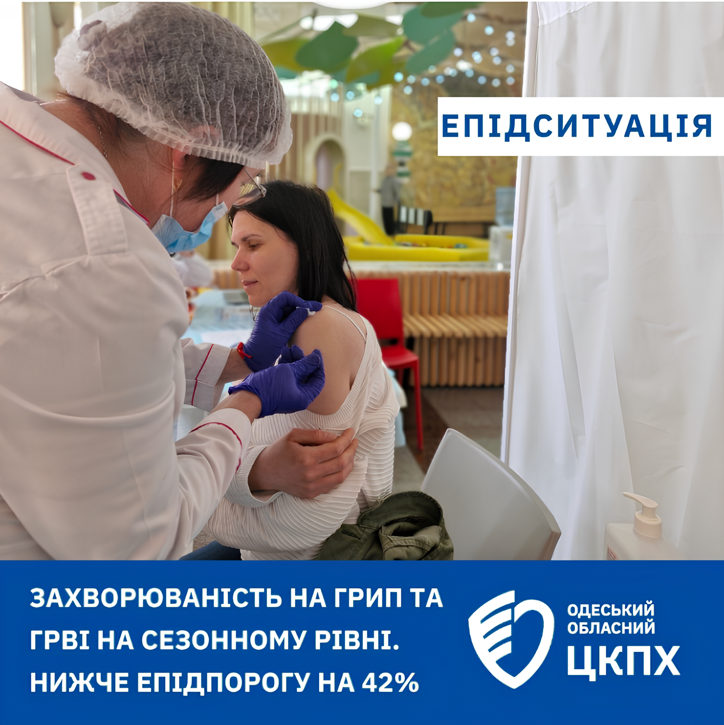 Захворюваність на гострі респіраторні вірусні інфекції залишається на сезонному рівні і нижче епідемічного порогу на 42%.