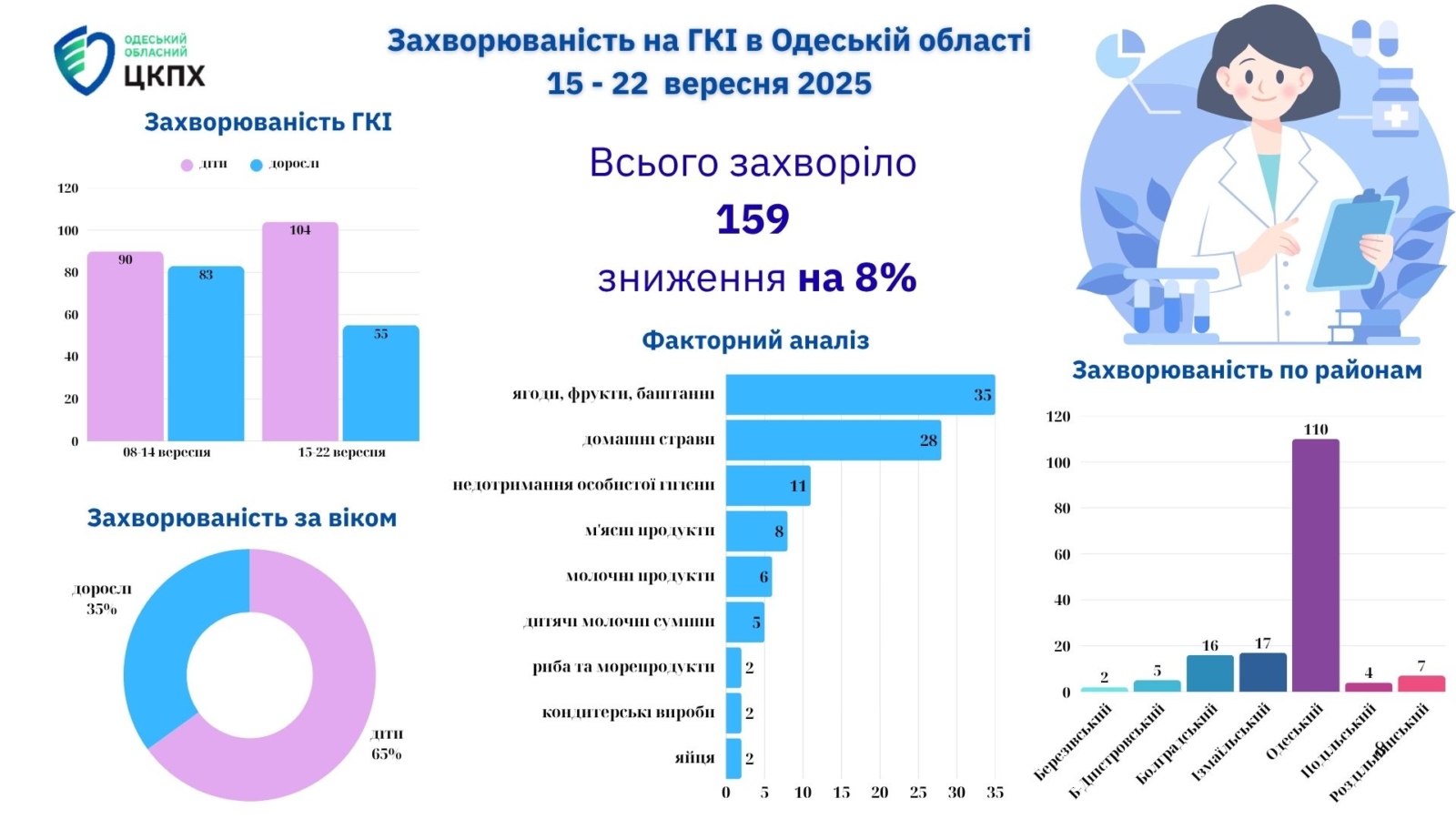 Оперативна інформація щодо епідемічної ситуації в Одеській області станом за період з 15 по 21 вересня 2025 року