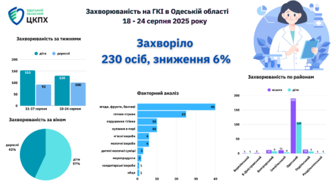 Епідситуація в Одеській області за період : 18.08. по 24.08.2025р.