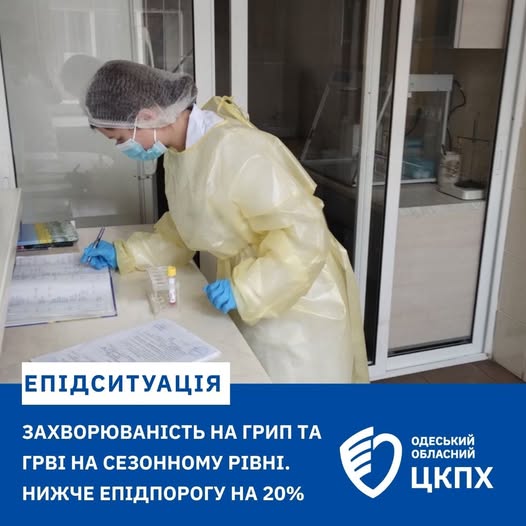 За період з 23 лютого по 1 березня 2026 року в Одеській області рівень захворюваності на грип та гострі респіраторні вірусні інфекції (ГРВІ), включно з COVID-19, залишається нижчим за епідемічний поріг на 20% та відповідає фоновому рівню інтенсивності епідемічного процесу.