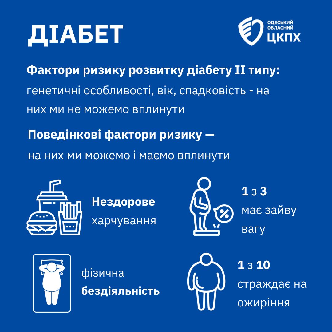 Визначити індивідуальний ризик цукрового діабету II типу можна за допомогою онлайн-тесту Центру громадського здоров’я за посиланням https://diabetes.phc.org.ua/