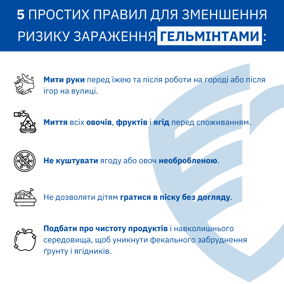 Особливо небезпечна полуниця, яка часто продається без миття. Зовнішня поверхня ягоди може бути забруднена землею або частками ґрунту, де можуть знаходитися яєць гельмінтів. Якщо цю ягоду їсти немитою, існує ризик підхопити аскаридоз — захворювання, яке викликає паразит аскарида.