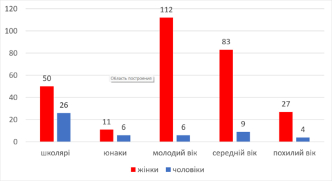 Всього з вересня 2023 по жовтень 2024 року проанкетовано 334 особи, з них 283 жінки та 51 чоловік. Вік респондентів від 11 до 73 років.
