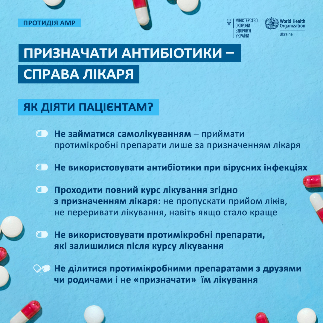 Серед головних причин розвитку антибіотикорезистентності – надмірне використання антибіотиків та недотримання призначеного лікарем курсу лікування.