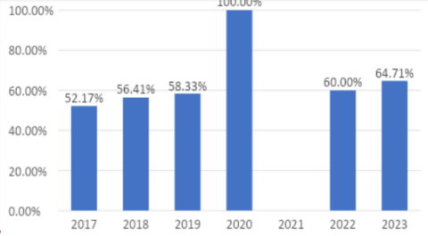 В той же час, при надходженні екстрених повідомлень зростає відсоток підтверджених діагнозів хвороби Лайма (з 52,17% у 2017 рік до 64,71% у 2023 році).