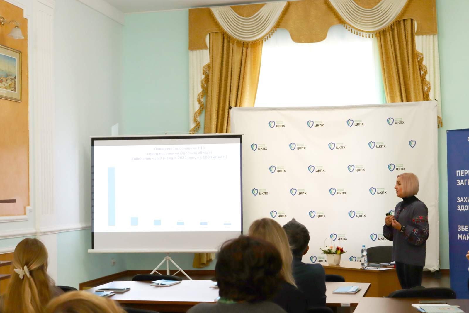 Центр представляла Тетяна Дорошенко, заступниця генерального директора Центру, яка поділилася досягненнями установи та розповіла про виклики, з якими вони стикаються у своїй роботі. Вона також окреслила шляхи їх подолання, зокрема, наголосивши на необхідності розробки спільної комунікаційної стратегії для профілактики неінфекційних захворювань в Одеській області.
