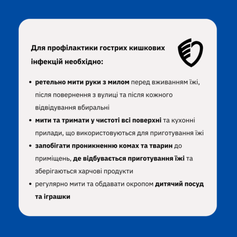 Основною причиною виникнення гострих кишкових інфекцій є елементарне недотримання правил особистої гігієни, технології приготування страв, умов та термінів зберігання сировини та готових страв, вживання неякісних харчових продуктів, які містять в собі збудник захворювання, тощо.
