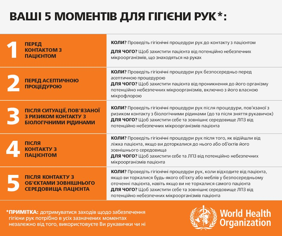 - Більшість інфекцій, пов’язаних з медичною допомогою, можна попередити при дотриманні гігієни рук – своєчасного і правильного дотримання чистоти рук.